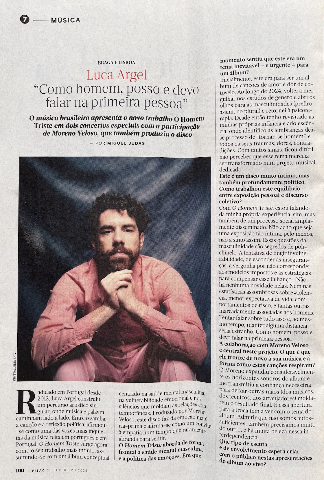 Em meio a muitos destaques nos meios de comunicação de Portugal, o novo álbum de Luca Argel repercute no Diário de Notícias, jornal Público, e recebe uma página e meia da revista Visão.